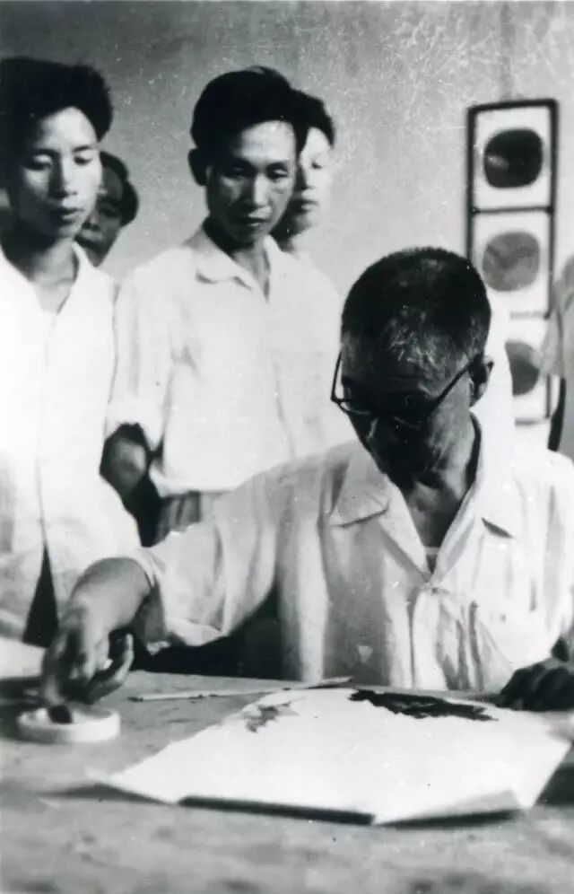 潘天寿为学生示范指画