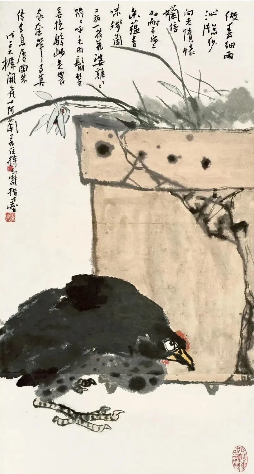 潘天寿 盆兰墨鸡(指画)