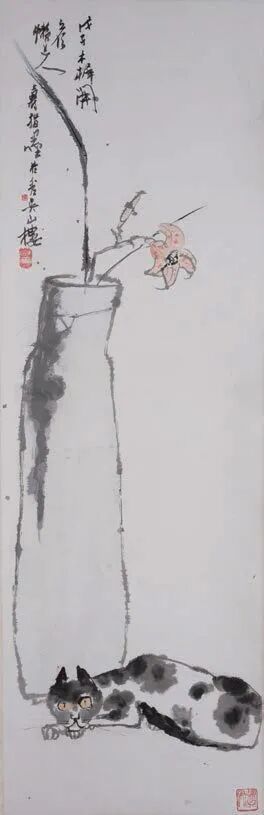 潘天寿 萱花睡猫画轴(指画)