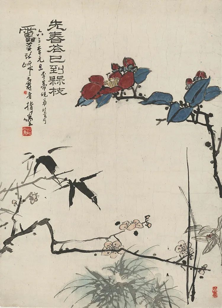 潘天寿 先春花已到梅枝