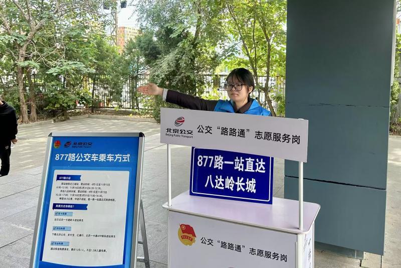 旅游公交877路从地铁北土城站“一站直达”八达岭长城。作为连接北京市区与热门景点的重要交通纽带,877路常年客流如织,国庆假期更是迎来客流高峰,对志愿者服务的需求显著增加。