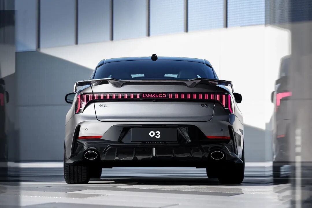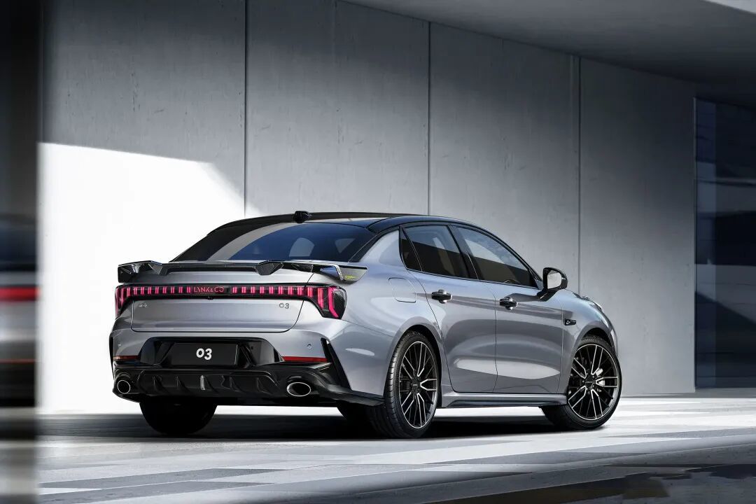 车身侧面,新款领克03与现款车型保持一致,新款领克03+装配亮黑色的双五辐式轮辋以及荧光绿色的对向四活塞前制动卡钳,侧裙部分并未搭载碳纤维套件。据了解,新款领克03+将新增哑光灰车色(非正式命名),另一款名为极光银的全新配色将应用于新款领克03。车尾部分,新款领克03对后包围进行弱化,并通过全新的大尺寸后扰流板增加视觉重心,不过新车仍保留双边共两出的排气布局。新款领克03+依旧搭载了固定式大尺寸碳纤维尾翼,尾翼端板上配有Downforce+赛道的组合样式徽标,后包围底部增加了碳纤维套件,两端同样配有小尺寸的风刃造型。