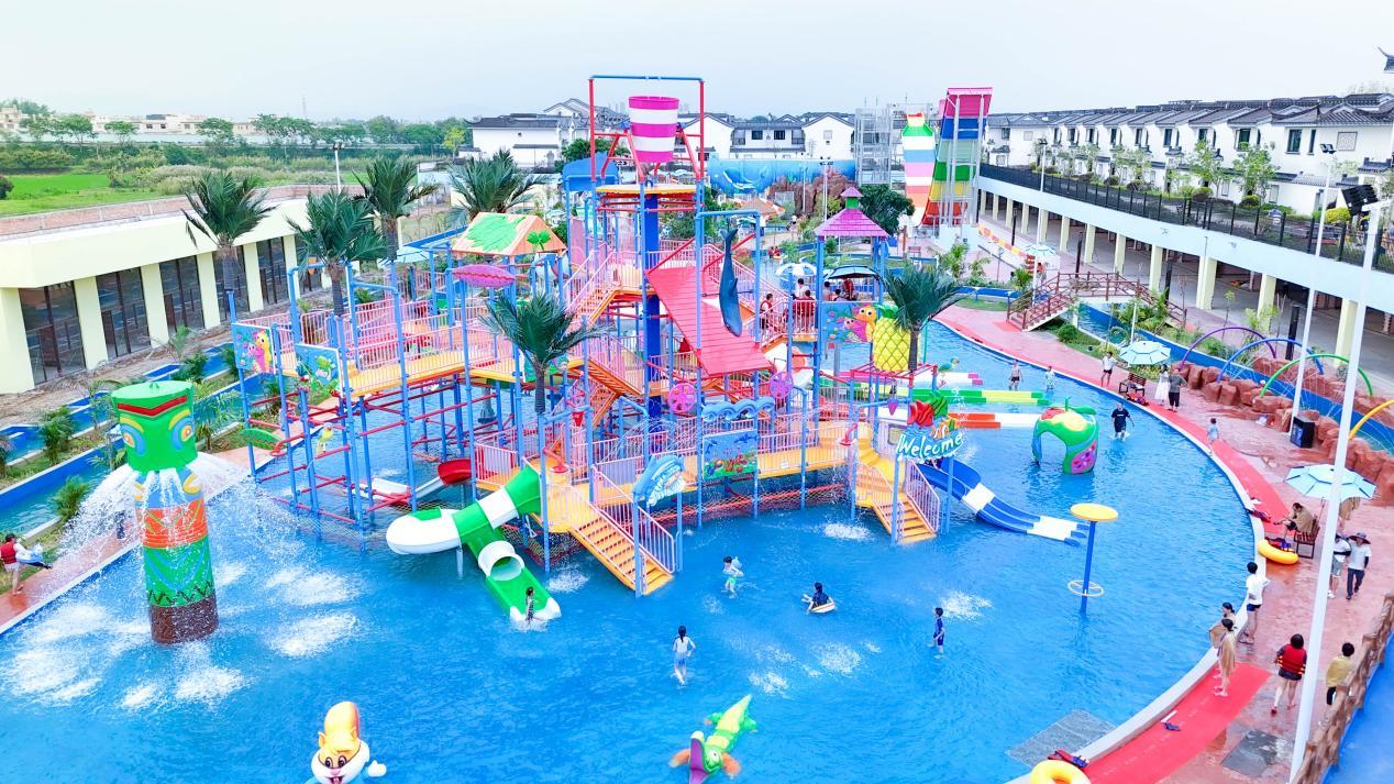 玖崇湖温泉度假区水上世界主题乐园引入天然温泉水让家长、小孩各有所乐。