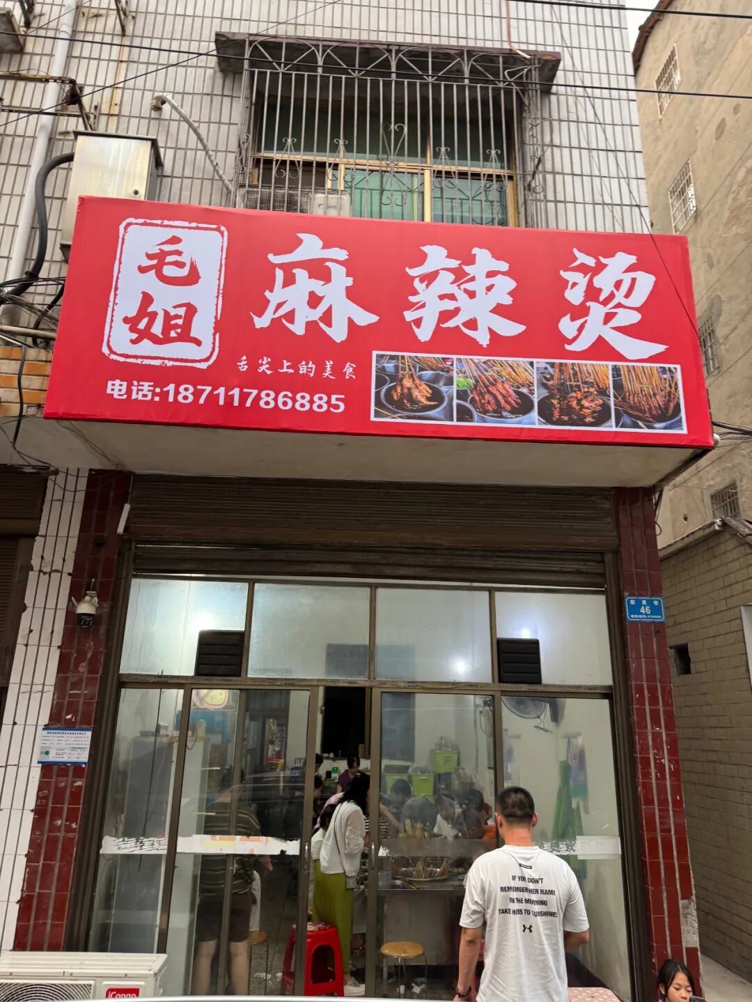 我先吃完,出门闲逛,天色渐暗,附近几步路的烧烤店和小炒店内灯火通明,但食客寥寥,愈发衬托得“毛姐麻辣烫”生意好。