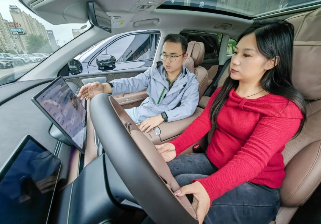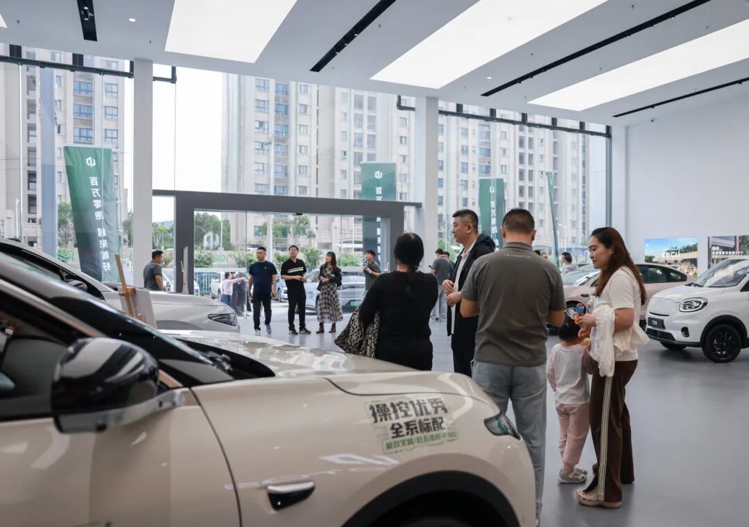 汽车4S店内,在汽车换新促消费活动的促动下,展厅内来看车、试驾的人络绎不绝。销售人员一边给客户讲解性能参数、优惠政策,一边指引着查看车内细节,整个展厅里一派热火朝天的繁忙景象。