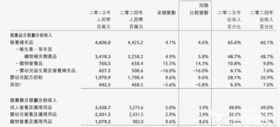 从产品来看,今年上半年,公司三大业务均实现同比增长。其中,成人营养及护理用品业务收入为34.4亿元,同比增长5.9%,为公司营收主力,婴幼儿营养及护理用品业务同比微增2.9%至25.0亿元,而宠物营养及护理用品业务收入10.8亿元,同比增长8.6%,增长最快。