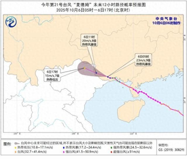 图1 台风“麦德姆”未来12小时路径概率预报图(10月6日05时-6日17时)。图片来源:中央气象台网站