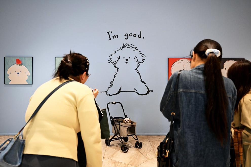 10月5日,顾客带宠物在西安万象城打卡。新华社记者 邹竞一 摄