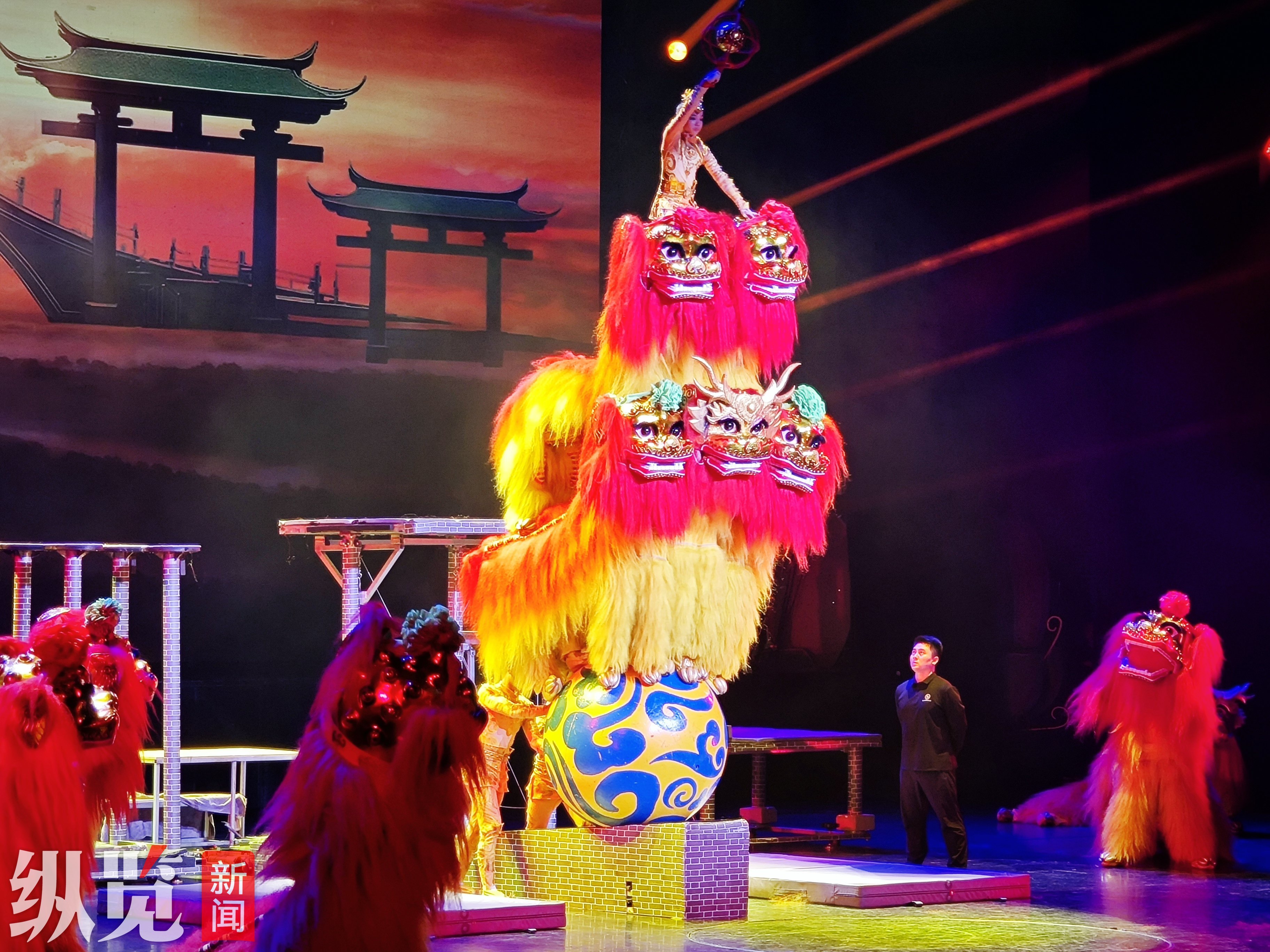 河北省杂技团和沧州杂技团的《祥狮跃九州》。边义婷摄
