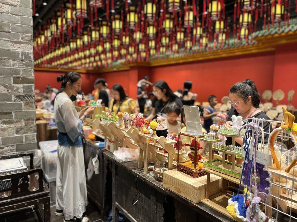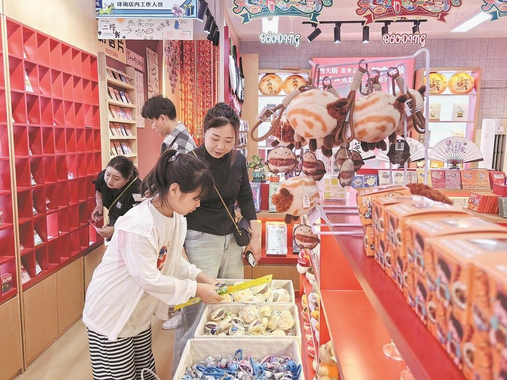 游客在保定市西大街瞻岳文创店里选购文创产品“驴火捏捏乐”。(河北日报资料片)田媛媛摄