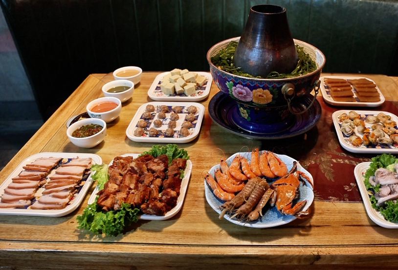 清蒸梭子蟹、盐水皮皮虾、海鲜烧烤、戴河杂鱼一锅鲜……
