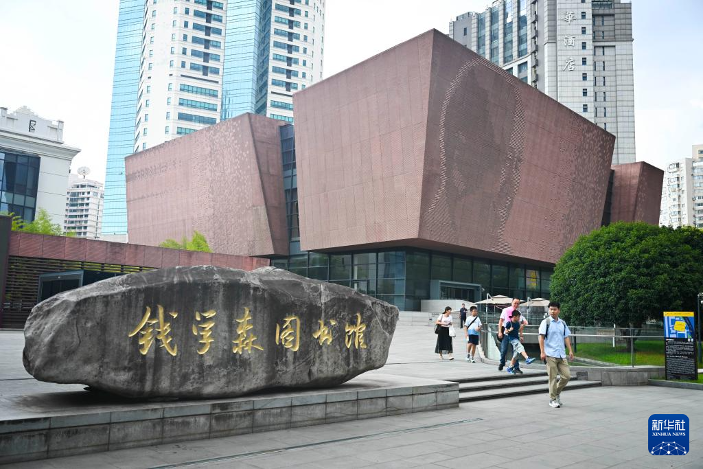 10月6日,观众在上海交通大学钱学森图书馆拍摄。