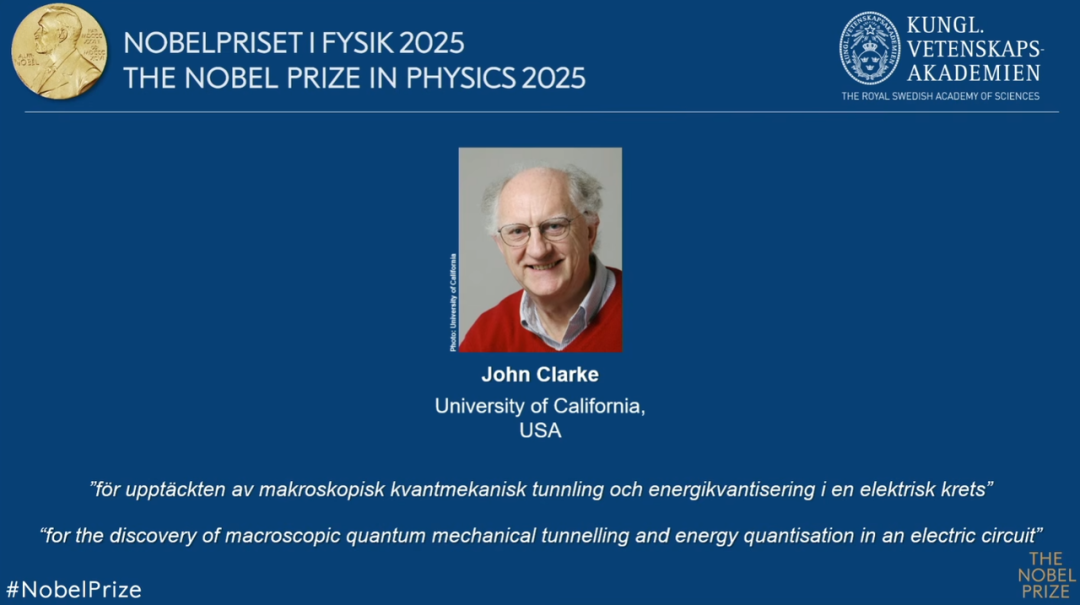 「我们根本没有意识到这可能成为诺贝尔奖的基础」,John Clarke 在谈到他们 20 世纪 80 年代在加州大学伯克利分校进行的研究时说道。