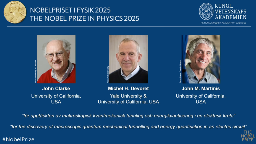 刚刚,本年度的诺贝尔物理学奖得主正式揭晓:美国加州大学 John Clarke、美国耶鲁大学 Michel H. Devoret、美国加州大学 John M. Martinis。获奖理由是「发现电路中的宏观量子力学隧穿和能量量子化」。