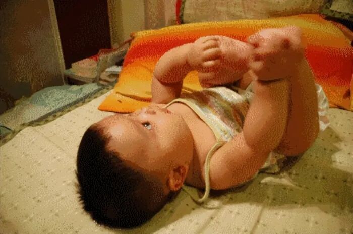而我们平时看到,3个月左右的小宝宝,已经开始会翻身了,其实是开始有“局部翻动”,有时需要借助大人、物品,帮助完成整个翻身动作。