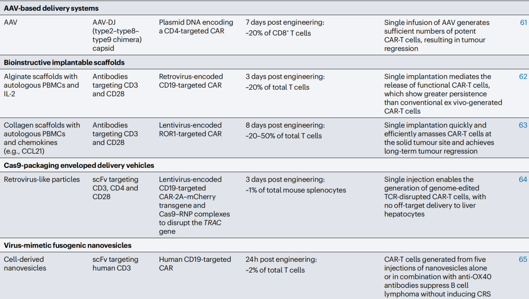2、临床前模型中 T 细胞体内 CAR 工程策略概述