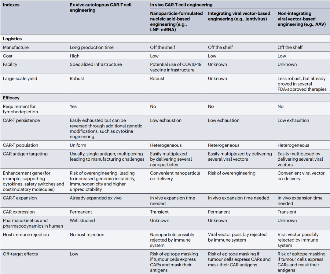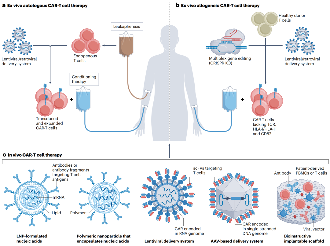 1、体外自体和异体 CAR-T 细胞疗法与体内 CAR-T 细胞疗法的概述