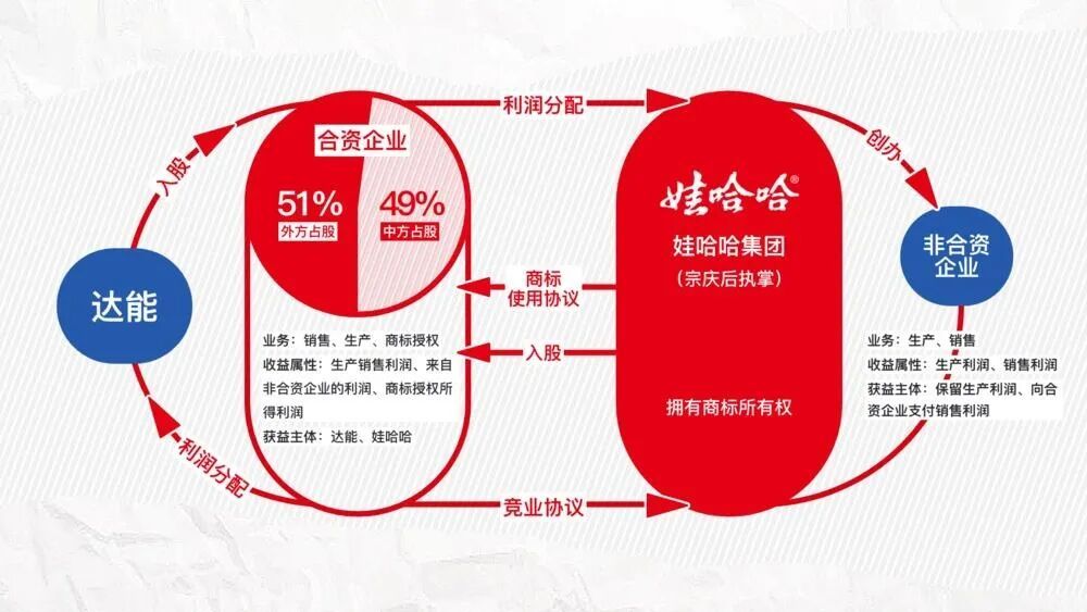 宗庆后在合资公司之外建立了一系列由国有企业和职工持股的非合资公司。