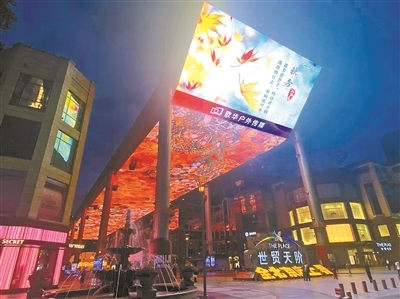 开。刚踏入世贸天阶的步行街区,视线便被头顶横跨250米、高30米的LED天幕牢牢吸引。不同于早年单一的影像播放,如今的天幕已升级为“沉浸式互动空间”。傍晚6点,一场“星空漫游”主题秀准时开启,一群大鱼在屏幕上游走。在“全北京向上看”的五个金色大字前,许多市民拍照留念。据工作人员介绍,天幕每年会更新4-6个主题,结合节气、节日推出定制内容,比如春节的“龙年贺岁”动画、七夕的“星空告白”互动,甚至会联动商圈内的品牌,将新品发布信息融入天幕影像,让“看天幕”从单纯的视觉体验,变成与商业消费联动的“仪式感场景”。步行街区两侧,商铺布局也围绕“天幕氛围”展开。一层的咖啡店将户外座位正对天幕,推出“天幕特调咖啡”,杯套印有当天的天幕主题图案;甜品店则设计了“星空慕斯”,造型与天幕中的星云影像呼应。傍晚时分,这些户外座位几乎座无虚席,“天幕下的下午茶”成了不少年轻人的社交新选择。