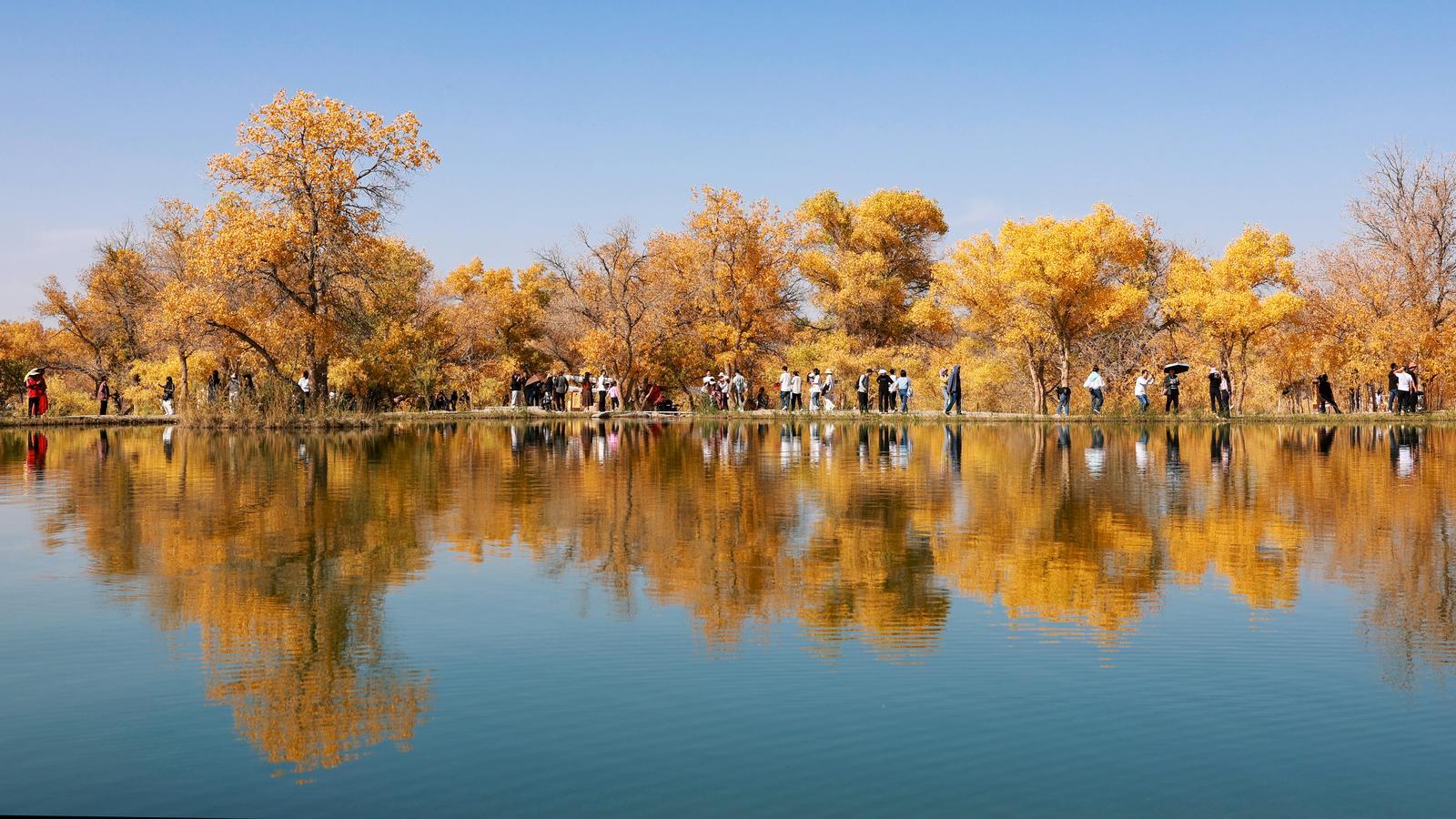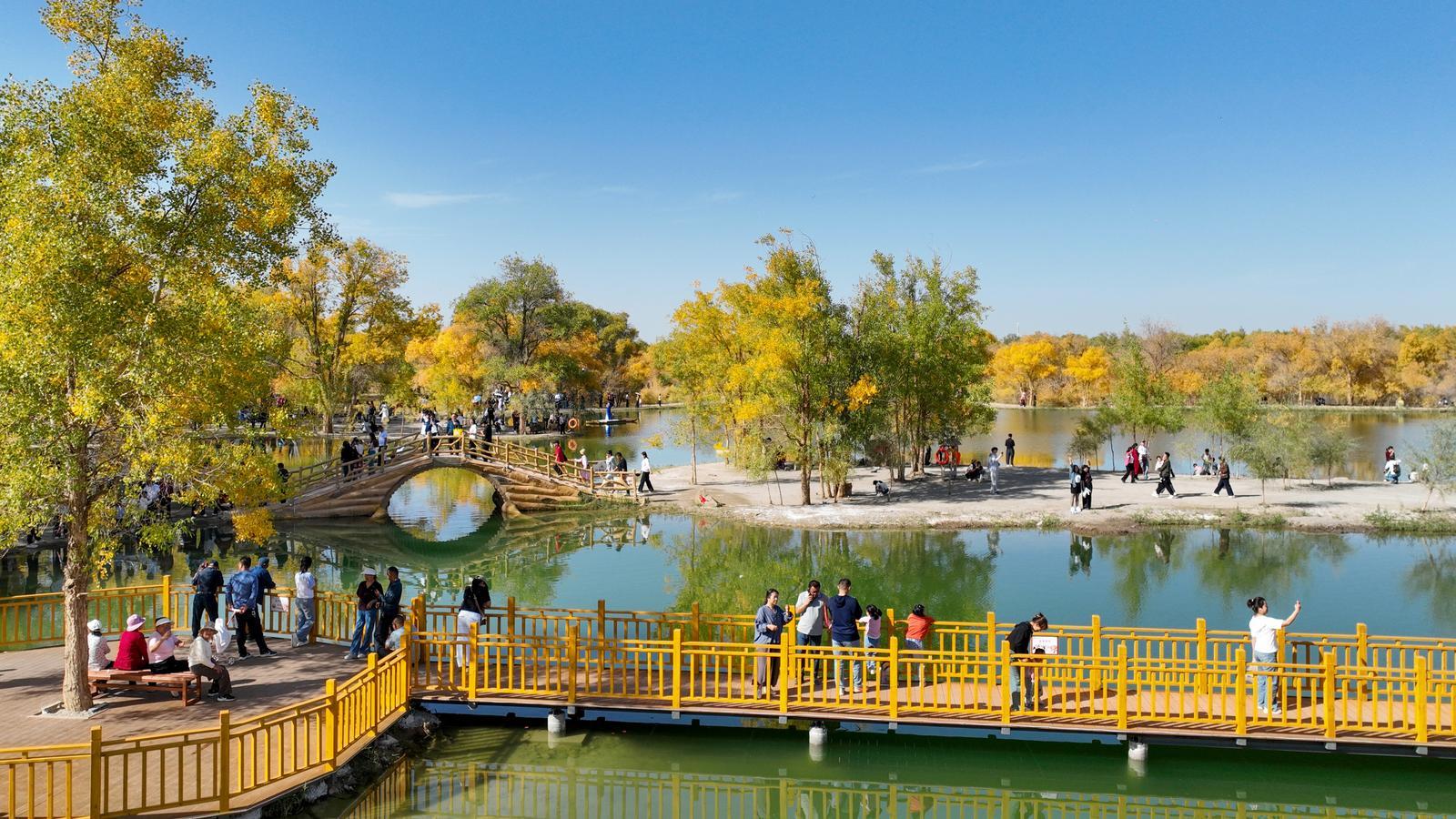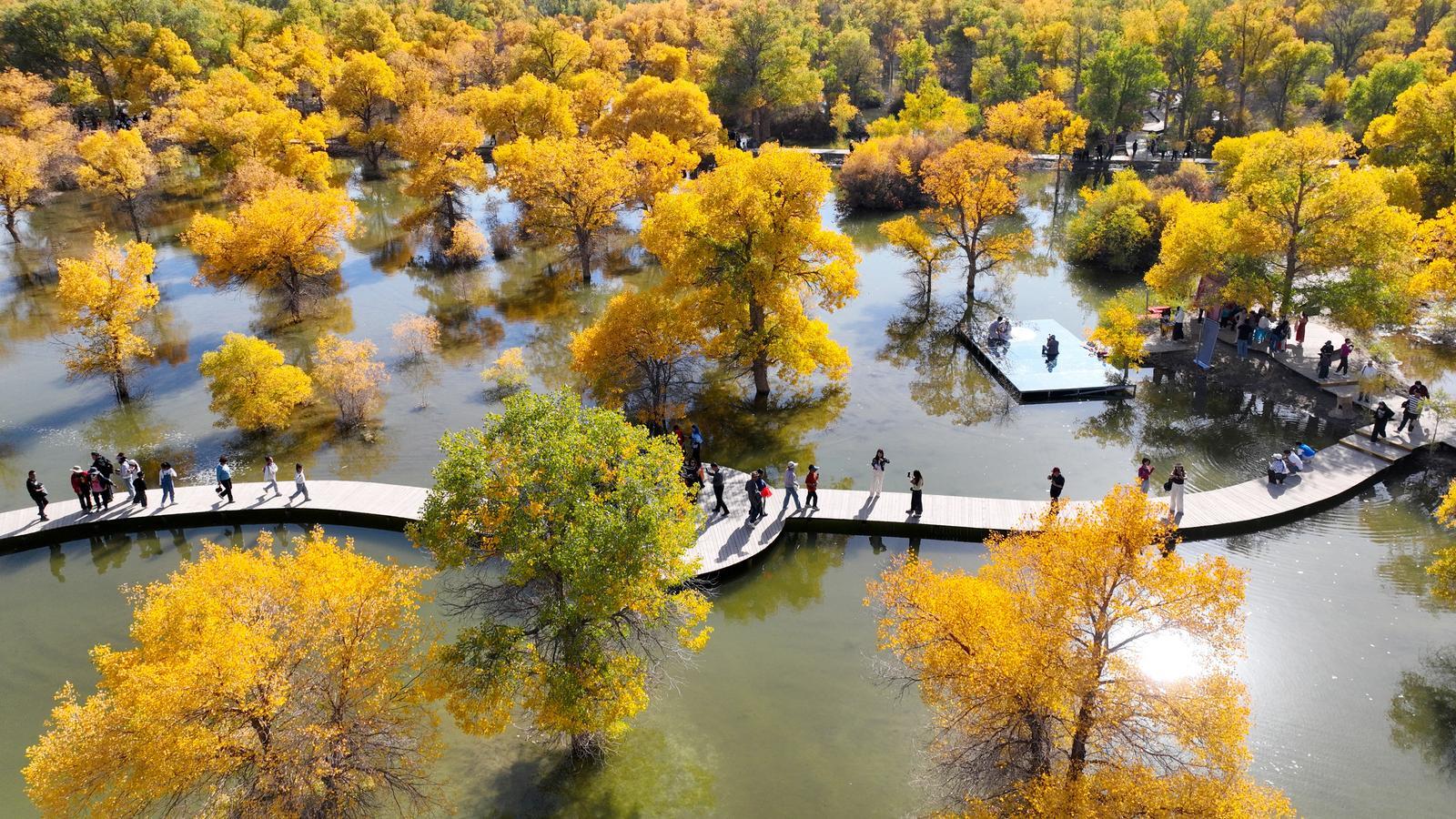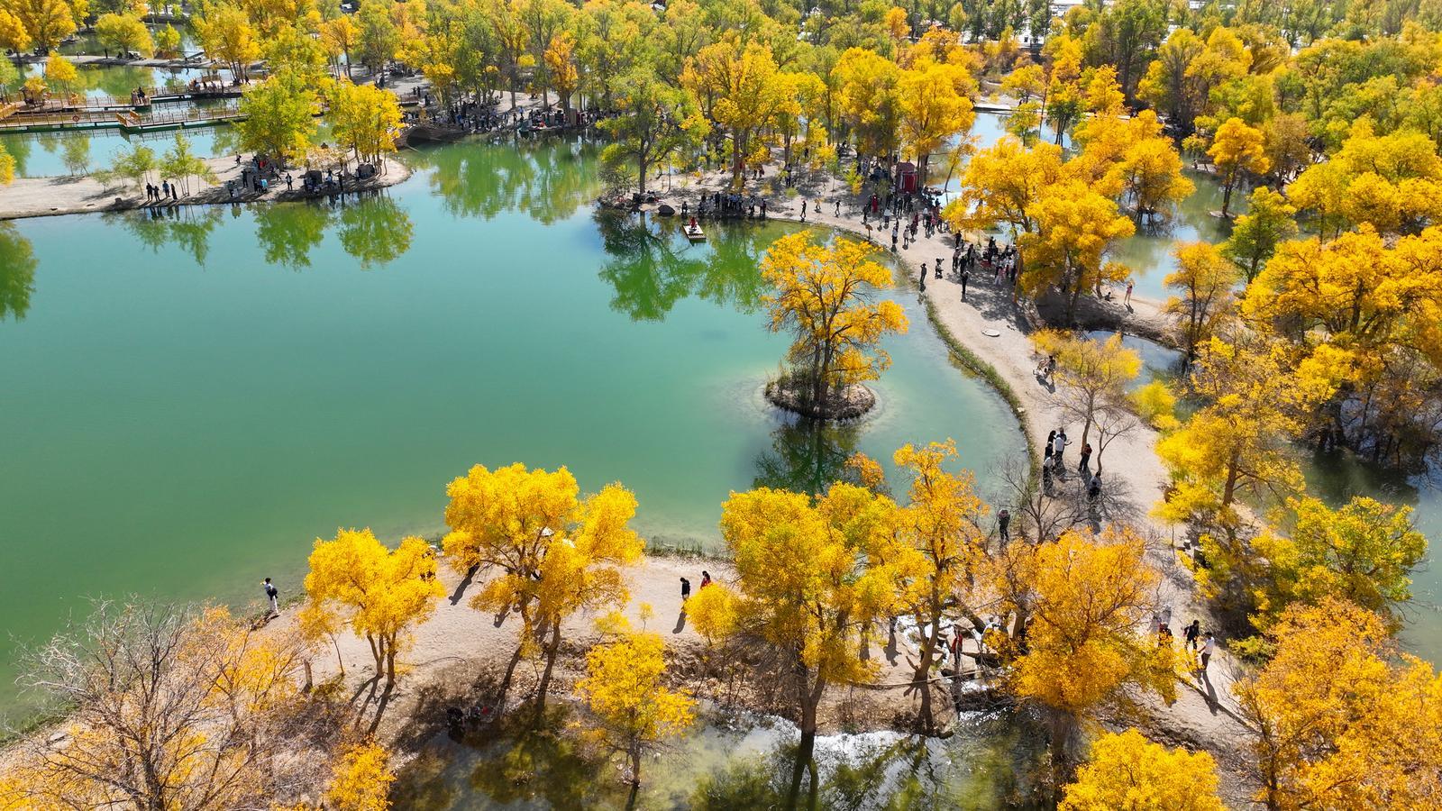 原标题:组图丨金塔:大漠胡杨绘盛景 八方游客醉金秋