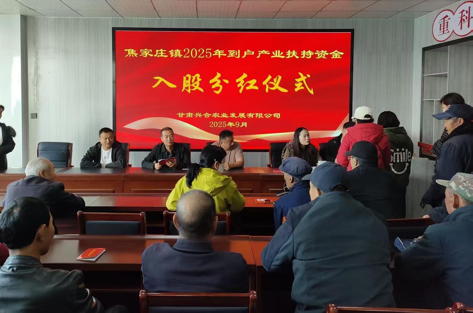 近日,甘肃兴合农业发展有限公司四楼会议室气氛热烈、暖意融融,焦家庄镇2025年到户产业扶持资金入股分红仪式在此隆重举行,88户已脱贫户喜获来自甘肃兴合农业发展有限公司的年度分红,总额达20.007万元。值得一提的是,这已经是该公司连续8年举行入股分红发放仪式,累计分红金额达145.338万元,持续为脱贫群众注入增收“活水”。