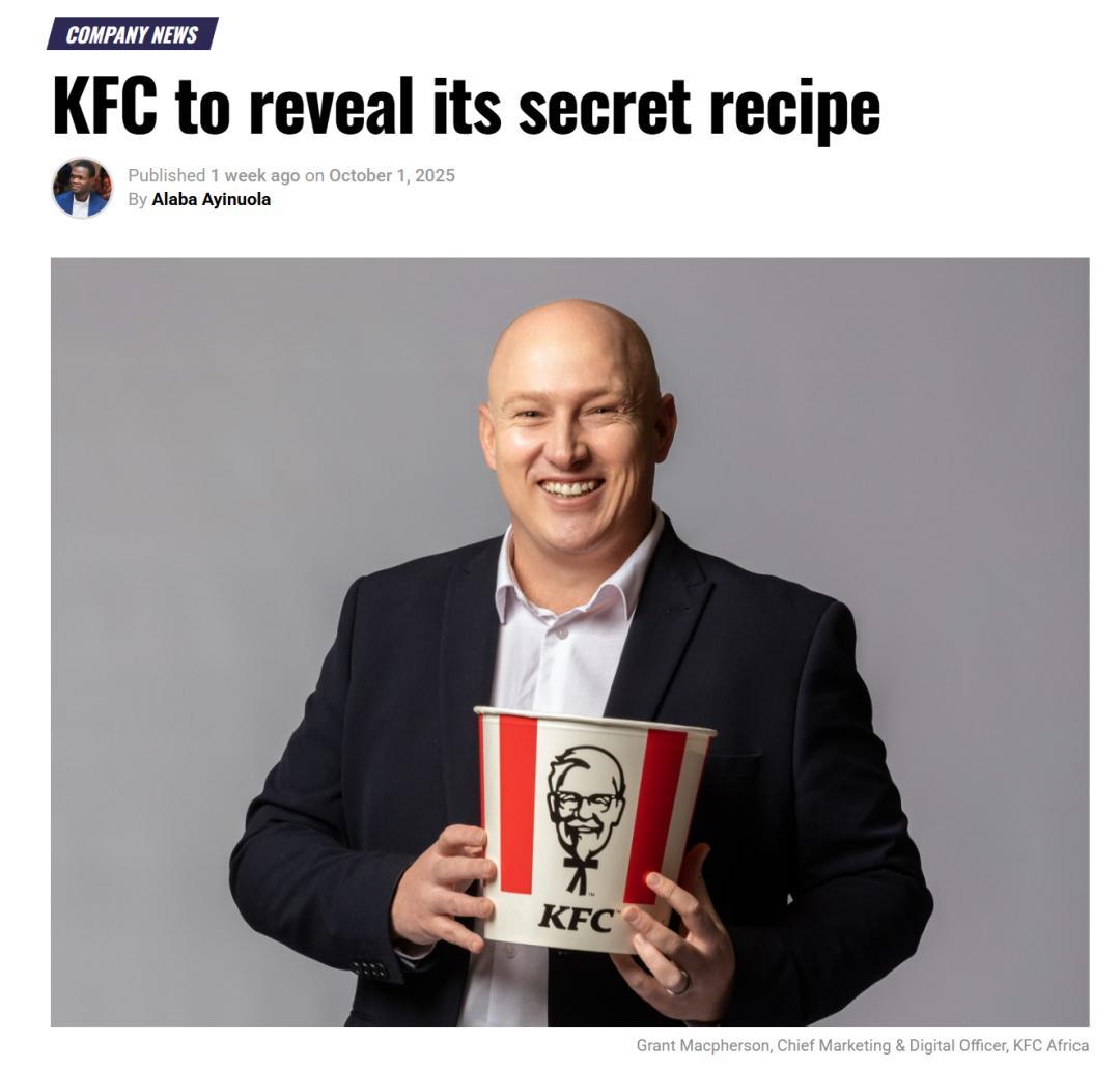 10月1日,KFC Africa 首席市场与数字官 Grant Macpherson 表示:“多年以来,大家一直在问我们秘方是什么。有的在猜,有的直接求我们公开,还有人拼命模仿。现在,我们决定让全世界都能知道,我们觉得这是件好事,不管对我们还是对南非,都有好处。”