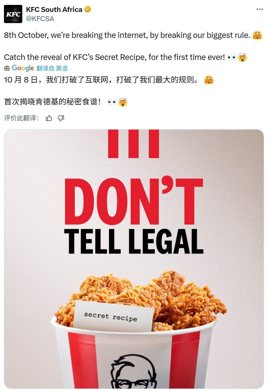KFC又在“炸鸡秘方”上摆了全球老吃家们一道。