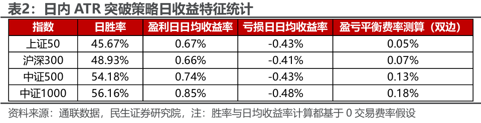 ➤ 走势类型预测的胜率仍不足以直接做出买卖决策,因此我们引入日内ATR突破策略为基线策略。