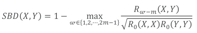 需要注意的是算法对于输入的序列X和Y会预先进行z-score处理首先保证缩放不变性,从而计算过程中的X和Y均值都为0。SBD的算法本质上就是取得在尽量较少平移的情况下获得较高的匹配度,平移幅度为扣分项,相关系数为加分项。