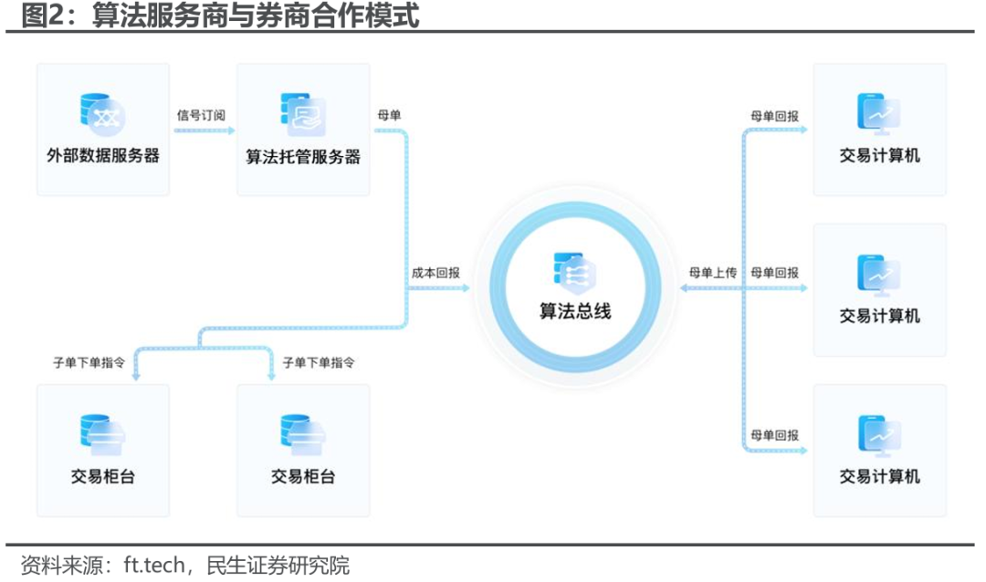 目前股票T0算法已发展出成熟第三方服务商,与券商的经纪业务展开合作。目前已有较多券商与程序化交易算法服务商进行了合作对接,投资者可以直接通过相应客户端调用服务商的T0底仓增强算法进行自动交易。对于上市公司股东、价值投资者等较长持仓的投资者,以及指数增强等的股票多头策略都可提供收益增厚服务。