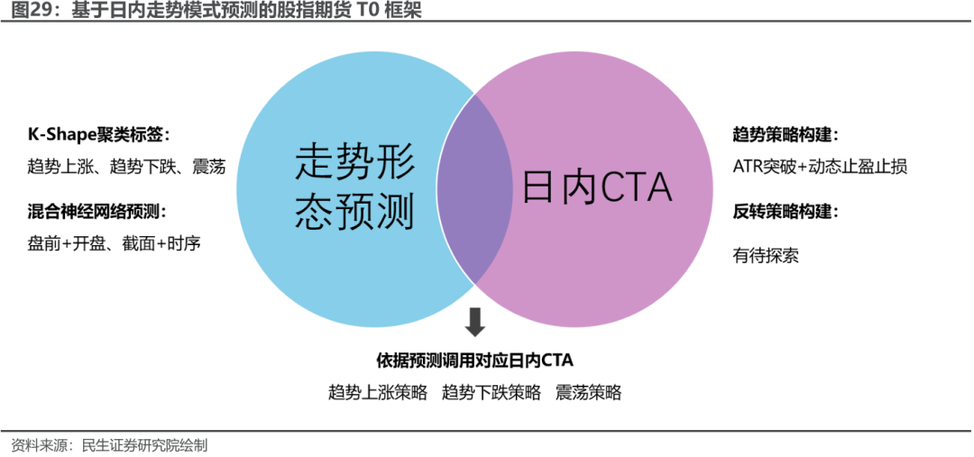对于中低频T0策略而言,预测走势类型相比预测收益率更有意义。首先,日内某时间段的具体收益率预测相对较难并且需求的训练数据量较大,股指并没有那么多的数据量。其次,在有基本的走势形态判断后,可以通过日内的CTA策略自动监测交易信号与完成风险控制。在CTA基线策略效果比较稳定的前提下,结合走势形态的判断而非收益率的判断或更能够发挥CTA的效能。