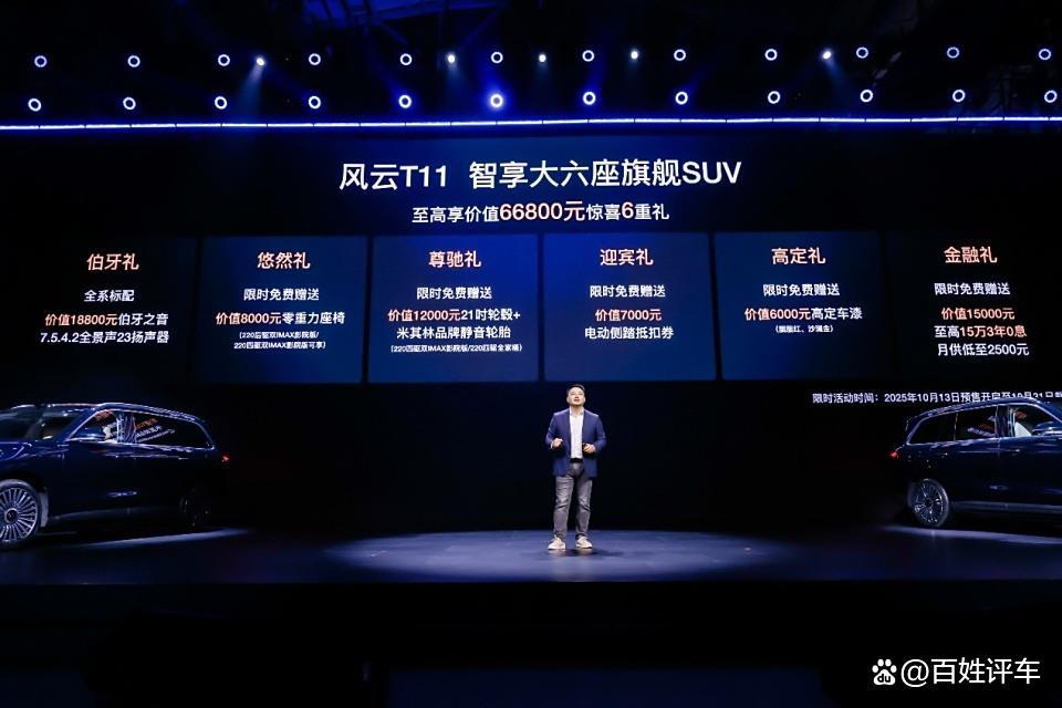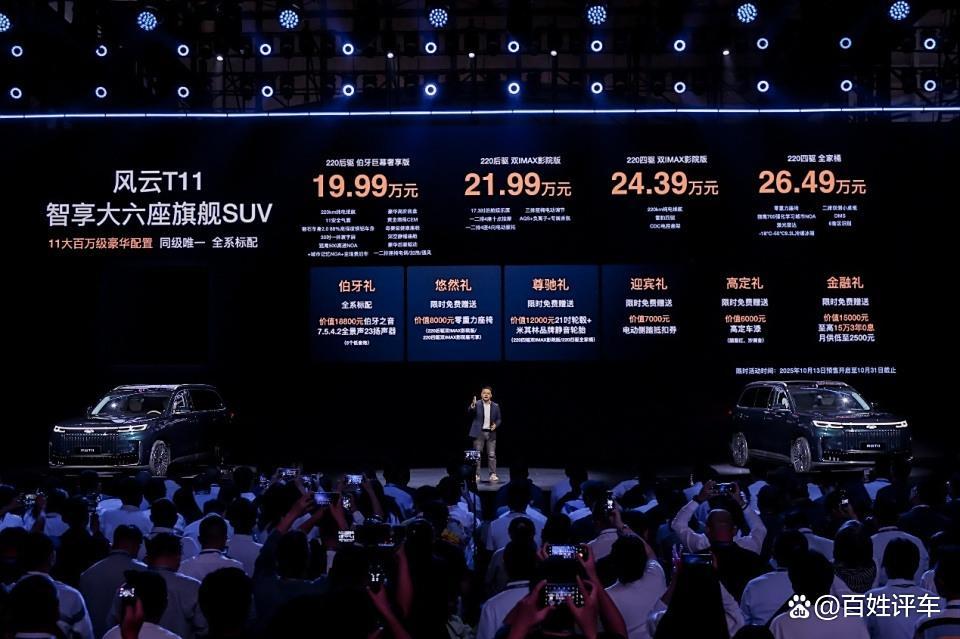 2025年10月13日,以“兑现”为主题的风云T11家庭品鉴日暨预售发布会在安徽·芜湖隆重圆满收官。作为风云品牌焕新后的首款旗舰级 SUV,风云 T11 定位为 “智享大六座旗舰 SUV”。新车以“顶格对标”为理念,凭借“超大更好”四大核心价值、三大沉浸式场景与11大全系标配,重新定义了家庭出行豪华体验,兑现中国家庭对品质生活的全维期待。