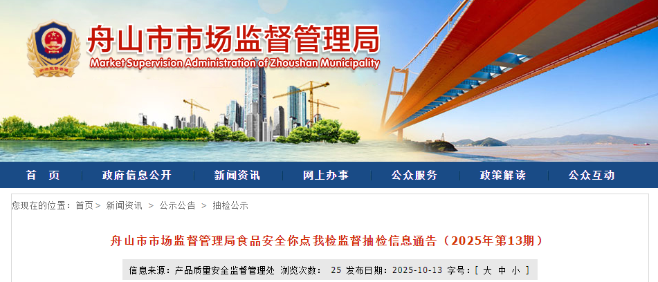舟山市市场监督管理局食品安全你点我检监督抽检信息通告(2025年第13期)