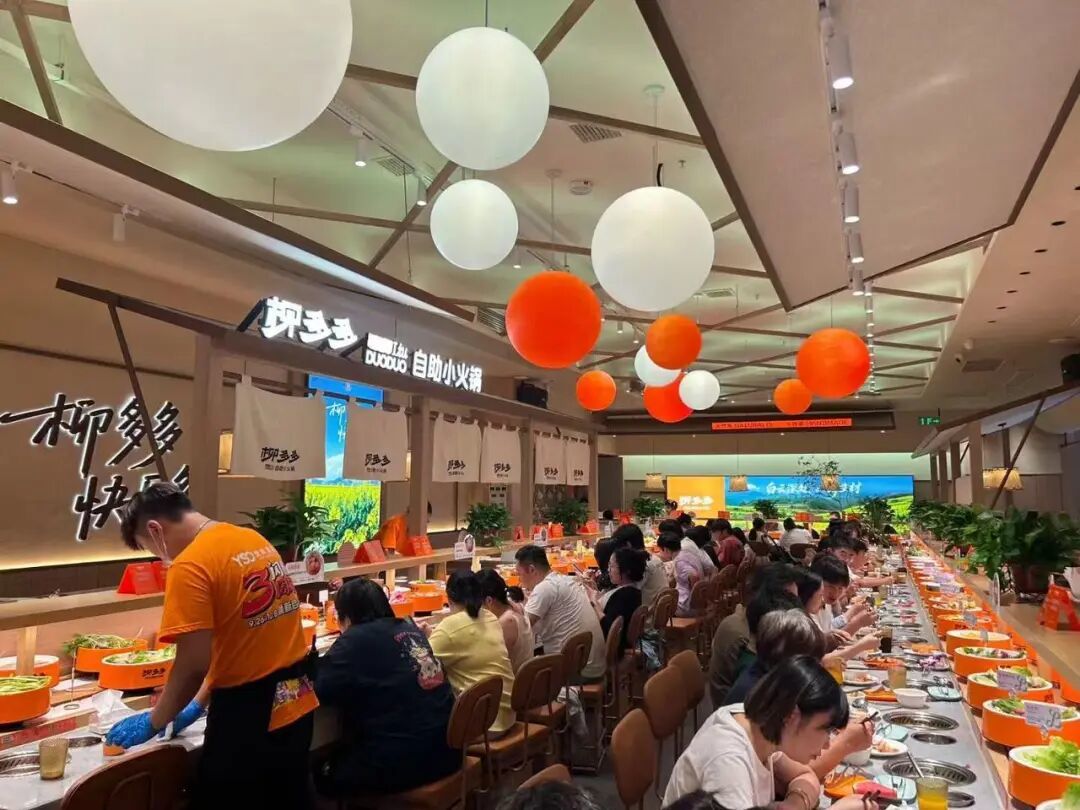 大渝火锅旗下的全新品牌柳多多·云山野自助小火锅,每天门口都上演排队盛况,它采用转转小火锅的形式,不再是讲究氛围的“大场景沉浸”,而是简化为小锅+自助的模式。