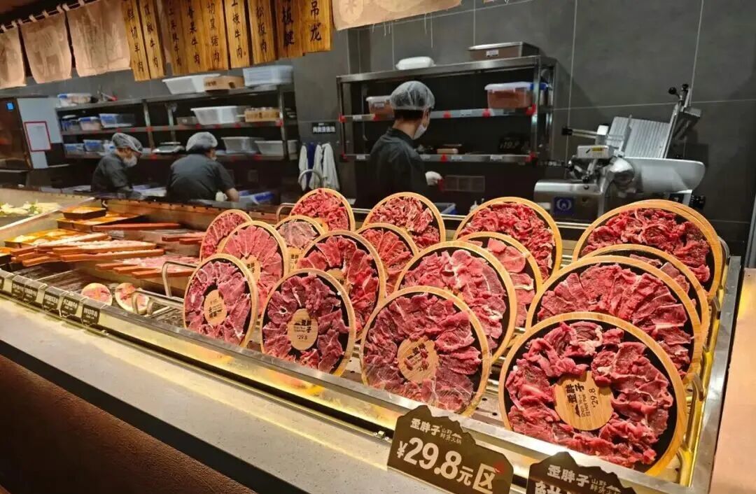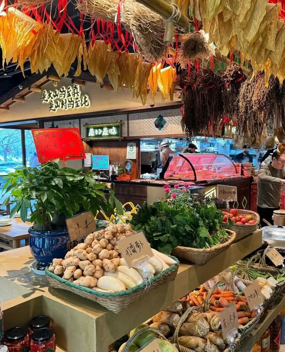 这家店还在门店专门辟出一块区域,用作食材展示(深谙山野火锅的食材直给风)。