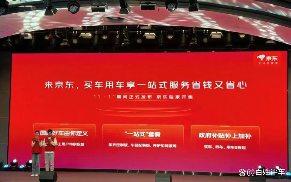 定位家庭智能电动SUV的新车,精准锚定大众消费市场,主打性能安全、外形时尚、续航能力、价格亲民四大核心卖点。为匹配家庭用户需求,京东还创新性地推出一站式配齐服务,提供车衣定制、车品配装、养护加持等个性化套餐,让汽车消费告别传统裸车+附加服务的繁琐模式。从10月底开启的全国试驾到11月9日的正式发布,每一步节奏都透露出互联网式的高效打法。