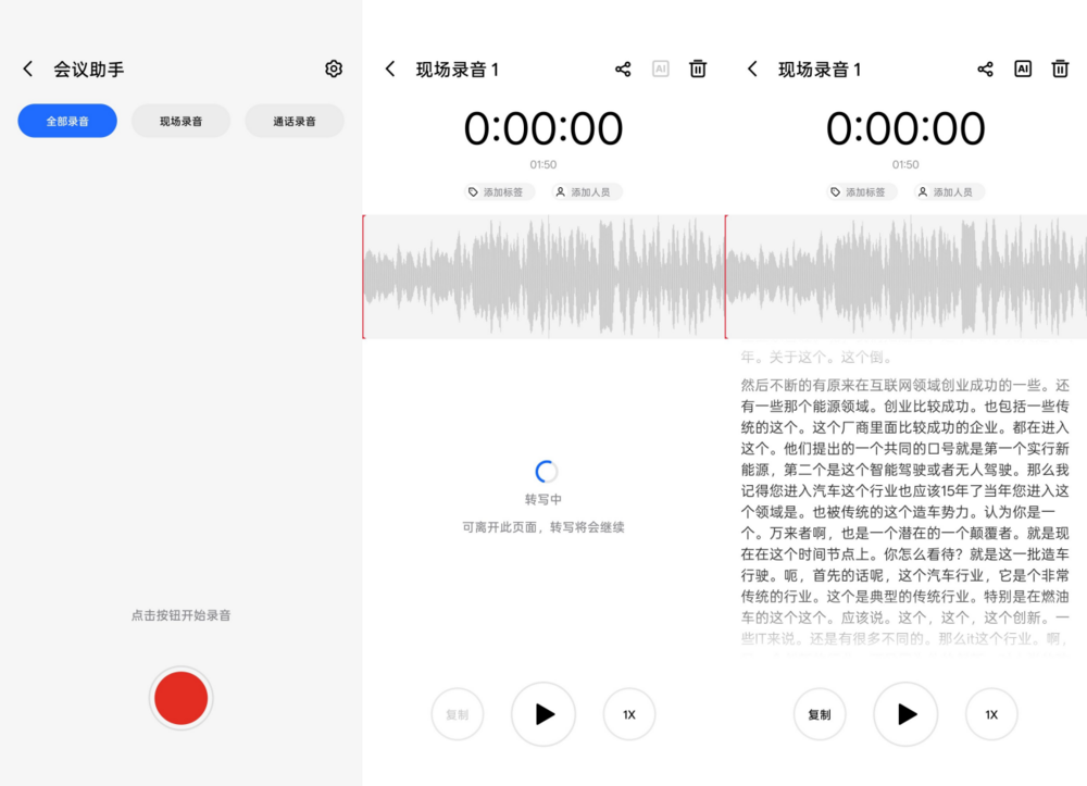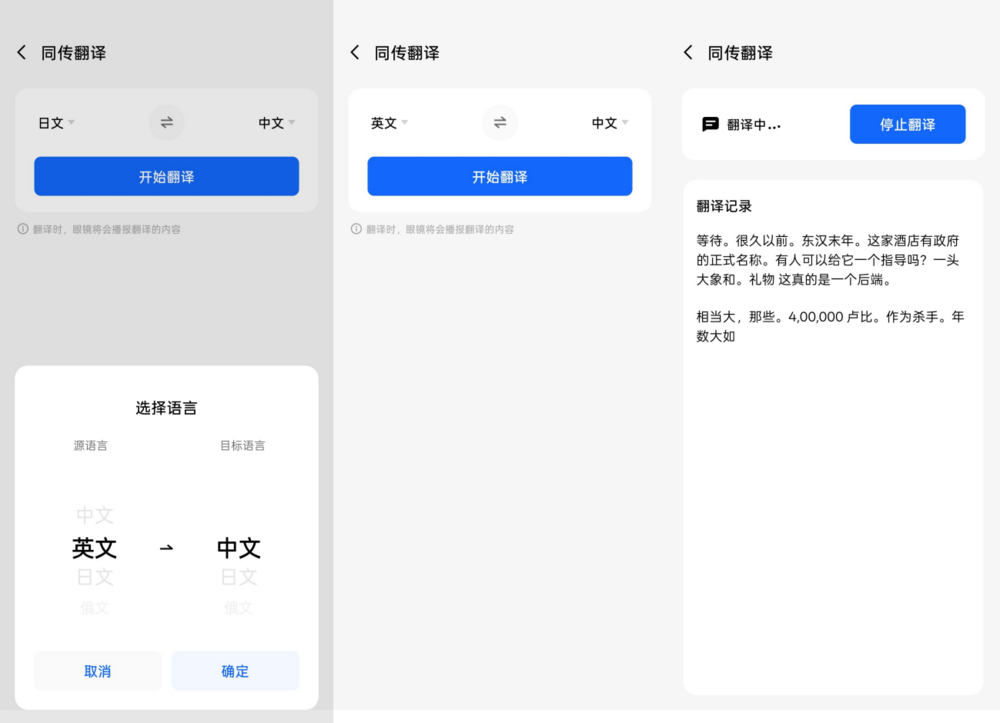 StarV Snap的AI能力贯穿生活与办公全场景,其核心在于骁龙AR1平台的设备端AI计算能力,无需依赖云端即可实现低延迟响应。语言交互方面,支持12国语言同声传译,旅行时面对外文菜单、路牌,可实时生成语音播报或文字字幕;商务场景下,会议录音能直接转写为结构化纪要,还可自动提取关键信息,大幅提升办公效率。不过这些操作需要配合APP完成,StarV Snap只是一款录音设备,所以整个支持的能力还是需要手机配合的。