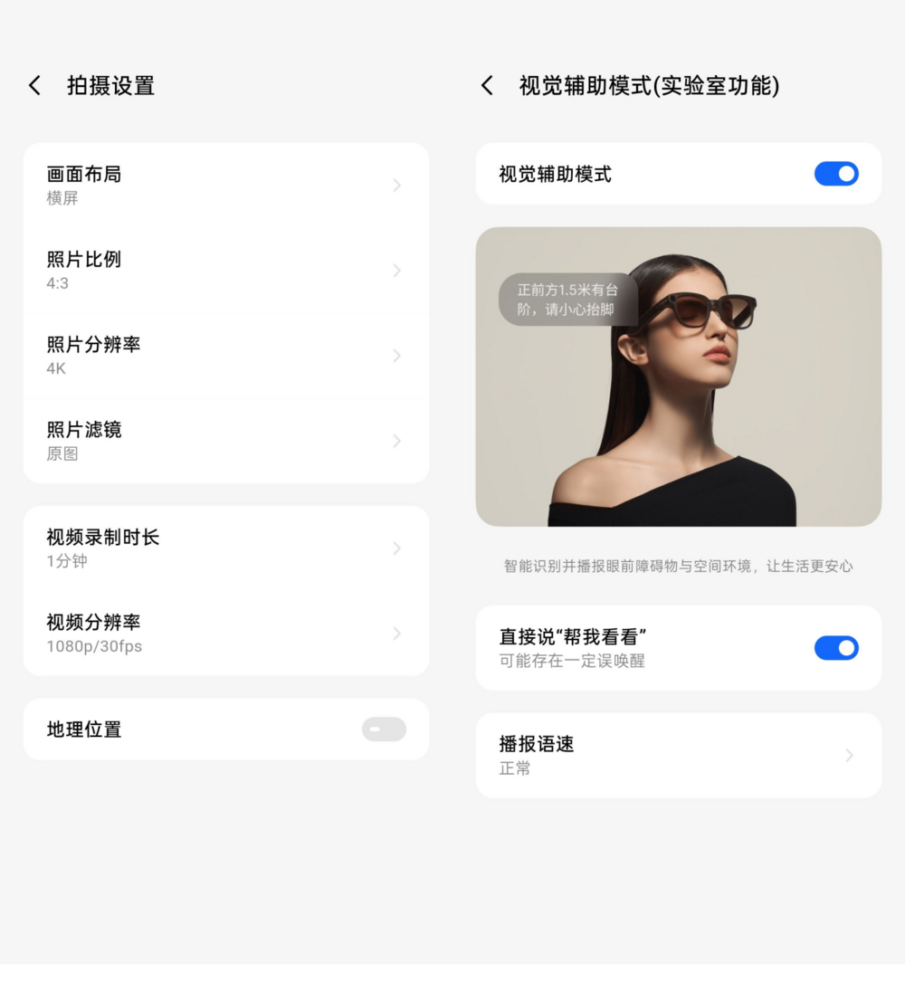 作为主打拍摄功能的眼镜,StarV Snap的硬件配置堪称专业,搭载1200万像素5P定制光学镜头,配备 109°超广角与f/2.2大光圈,配合第一代骁龙AR1平台的ISP图像处理能力,成像质量远超普通智能眼镜。