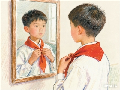 从那以后,红领巾成了我每天清晨的“小约定”。起初总系不好,后来我练熟了,每天都会对着镜子把结调得方方正正,连边角褶皱都捋平——好像只有这样,才对得起“小伙伴”。