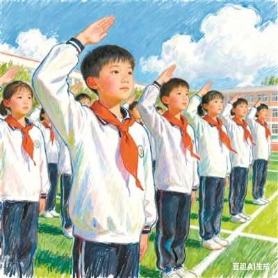 现在我六年级了,系红领巾早已不用看镜子,却仍会多花几秒抚平边角。低头写作业时瞥见桌角叠好的红领巾,那年建队日的梧桐叶、去年义卖时的情景便会浮现。这条红领巾,从“有点沉”变成了“很温暖”,我也长成了会助人的孩子。原来,入队的意义,从不是系上红领巾的那一个瞬间,而是它陪伴我慢慢懂事、悄悄长大,让我真正懂得了责任与奉献。
