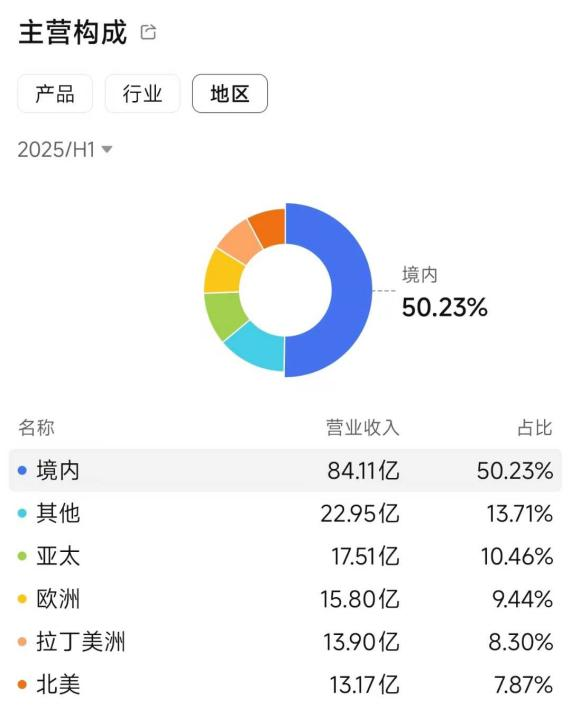 然而在国际市场上,迈瑞医疗表现依然稳健。2025年上半年,公司国际业务同比增长5.39%,其中国际体外诊断业务实现超过30%的双位数增长,国际化学发光业务增长超过30%。上半年,公司国际业务收入为3.32亿元,同比增长5.39%,占公司总营收比重达到50%。