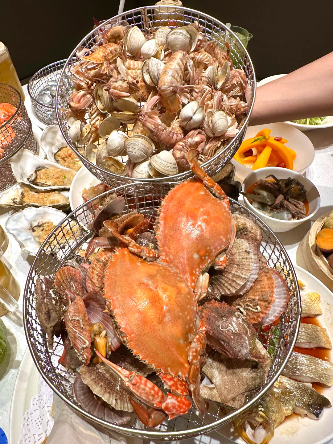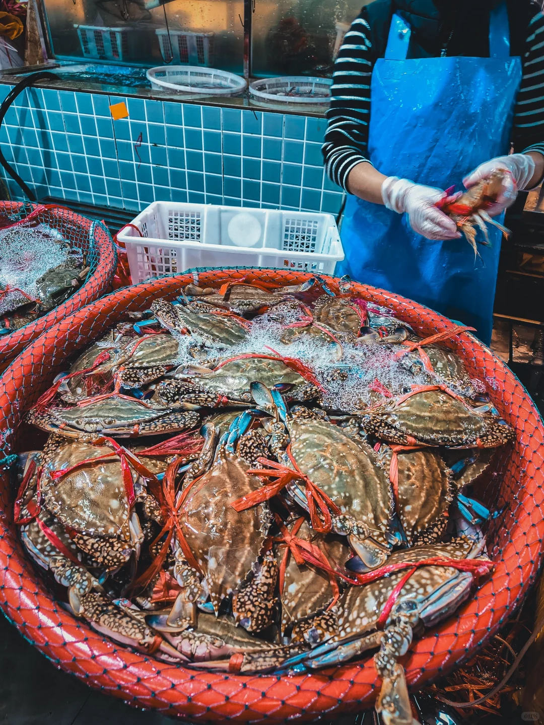 挑一只最生猛的,现场加工:清蒸蟹腿肉质甘甜饱满,芝士焗蟹香气浓郁袭人,蟹黄拌饭更是奢享之选——每一种吃法,都配得上一句“人间值得”。