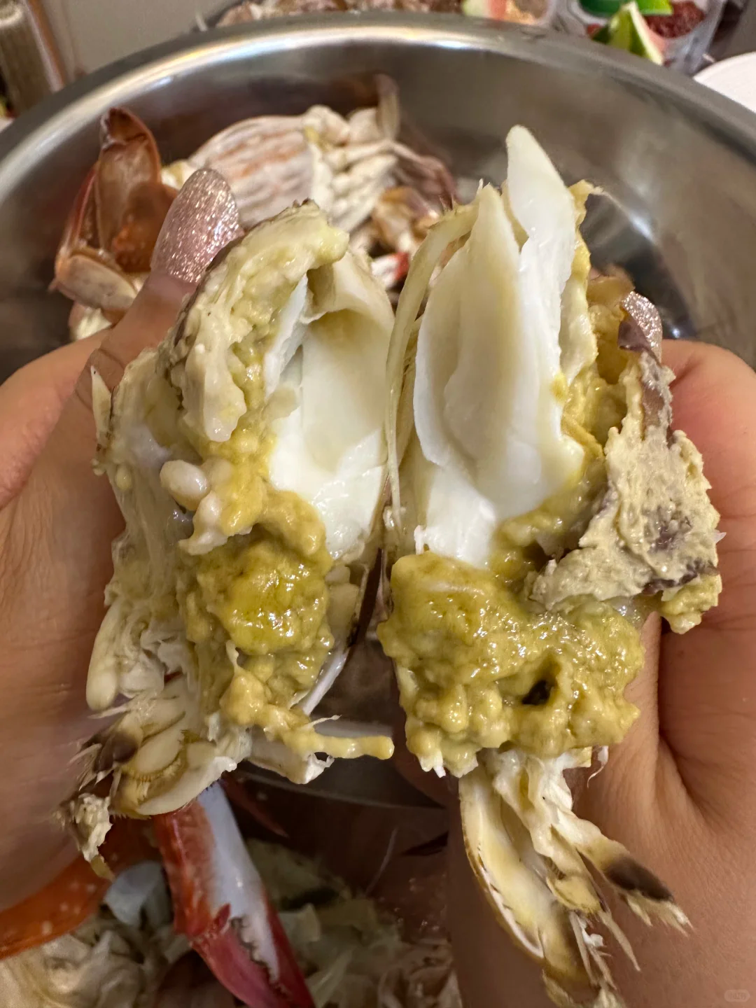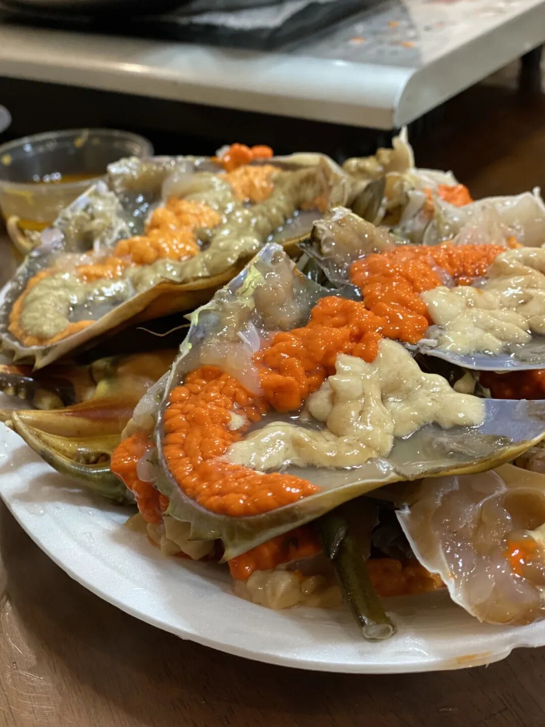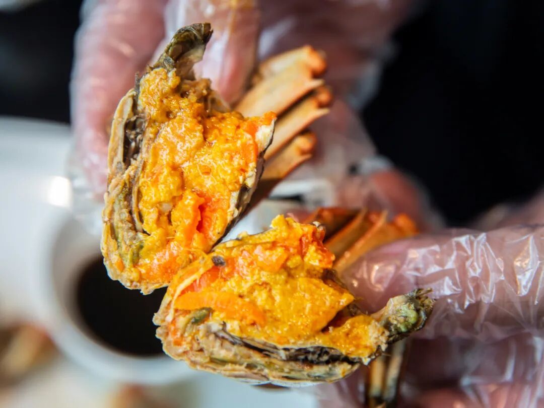 蒸熟后,整只蟹从壳到脚都泛着油光,揭盖瞬间香气扑鼻。一口下去,丰腴香醇的膏油在口中化开,足以刷新你对“鲜”的认知。不过黄油蟹实在稀有,一千只里也难找出四五只。