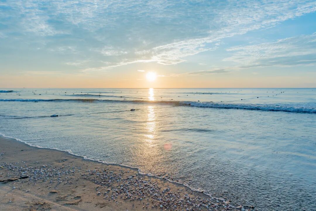 金沙湾是湛江的“城市会客厅”,高楼与蓝天碧海同框,沿着滨海步道慢慢散步,或是干脆在细软的沙滩上坐下,在观海平台上与"湛江"地标合影,或是干脆在细软的沙滩上坐下,等一场染红天际的绝美日落。