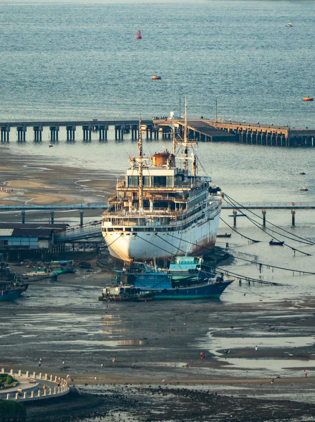 在霞山区的渔港公园畔,一艘名为 “巴西玛鲁”号的废弃巨轮静静泊在海岸边。它曾是远航的客货轮,如今已成为湛江的标志性景观和一代人的记忆符号,也在热播网剧《隐秘的角落》中作为取景地出现。