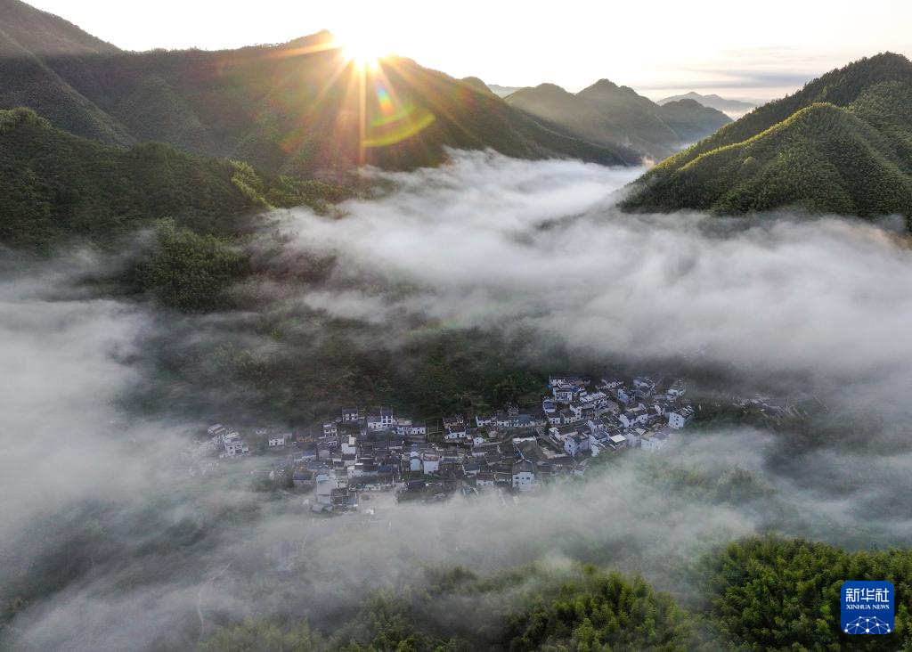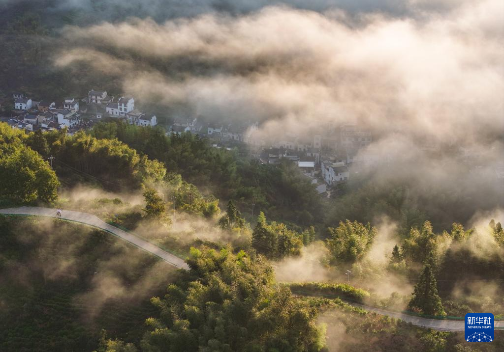 10月16日,秋雨初歇的安徽省黄山市黟县宏村镇木坑竹海景区云海涌动,萦绕于漫山竹林之中,鳞次栉比的徽派民居与流动的云雾交织,宛若诗意仙境。