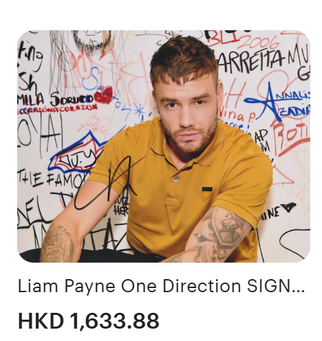 在二手交易平台上,一张利亚姆·佩恩亲笔签名的签名照,价格可以卖到超过一千元人民币,并且交易量很高。