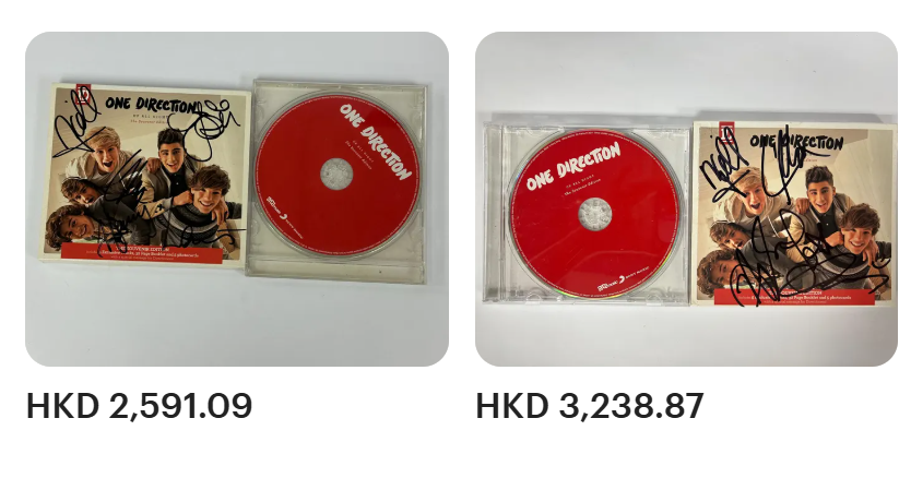 不少单向乐队时期的五人集体签名 CD 也正在挂牌出售,价格也非常高。