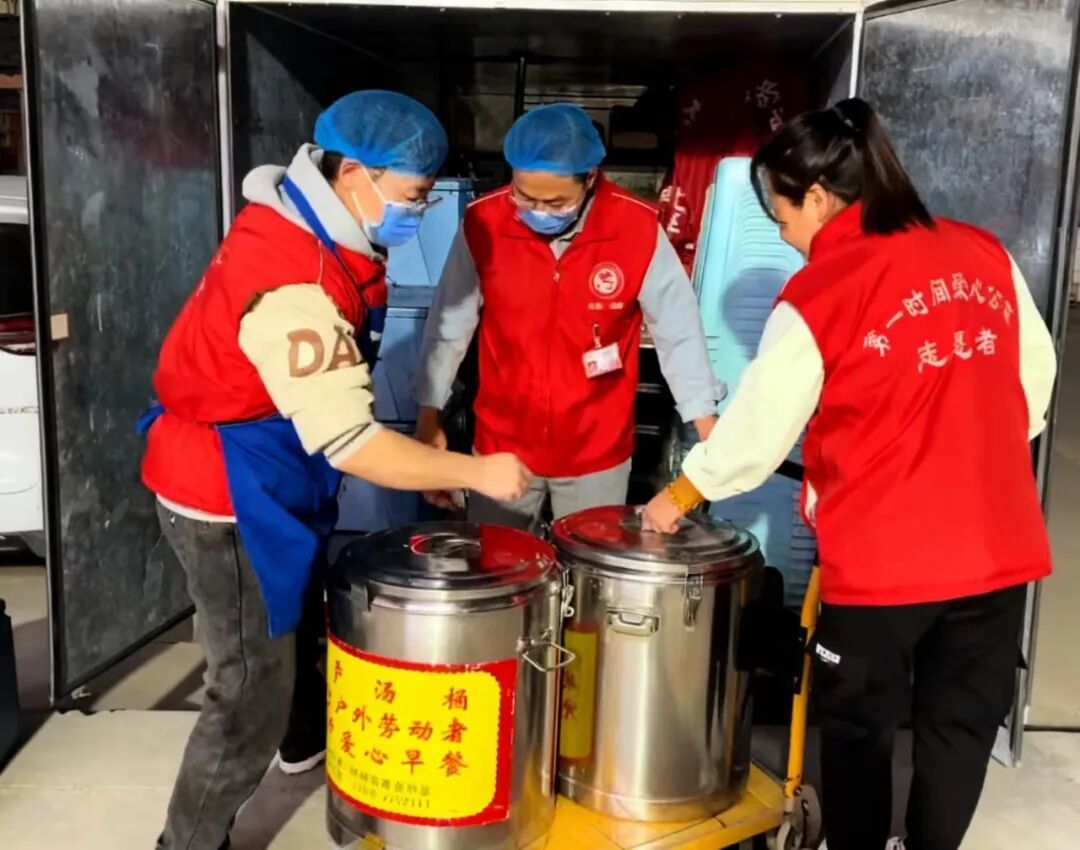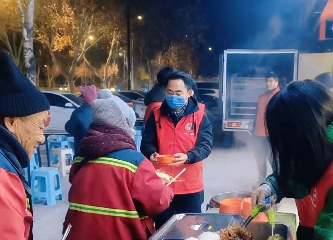 某个寒冬的清晨,在志愿者即将收拾餐具时,一位行动不便的大爷姗姗到来,他小心翼翼的问:“还有饭吗?”