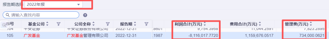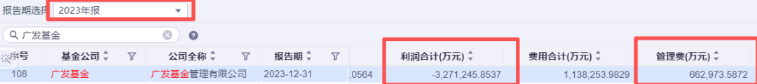 另一方面,同花顺iFinD数据显示,就在广发基金规模大跃进的2022年至2023年期间,广发基金分别收取了约74亿元、66亿元的管理费,但给基民造成的亏损分别为811亿元、327亿元,合计超1100亿元。